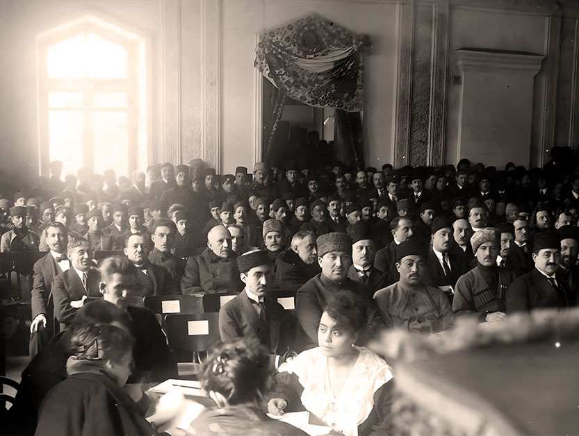 AZƏRBAYCAN PARLAMENTİNDƏ FƏALİYYƏTİ (1918-1920-ci illər) 17 aylıq fəaliyyəti dövründə Azərbaycan Xalq Cümhuriyyəti Parlamentinin 145 iclası keçirilib. İlk iclas 1918-ci ilin dekabrın 7-də, son iclas isə 1920-ci ilin aprelin 27-də olub. Yetərsay olmadığından bu iclaslardan 15-i baş tutmayıb. Qalan 130 iclasdan ikisi tarixi – 28 May və 15 Sentyabr 1919-cu il – Azərbaycan İstiqlalının və Bakının azad edilməsinin birinci ildönümü müzakirəsi ilə keçirilib. Parlamentin müzakirəsinə 270-dən çox qanun layihəsi çıxarılıb ki, onlardan 230-a qədəri təsdiq edilib. Parlamentdə 11 komissiya fəaliyyət göstərib. Xaricə göndəriləcək 100 nəfər azərbaycanlı gəncin seçilməsi üçün parlament üzvlərinin – Məhəmməd Əmin Rəsulzadə, Mehdi bəy Hacınski, Əhməd bəy Pepinov, Qara bəy Qarabəyov və Abdulla Əfəndiyevdən ibarət xüsusi komissiya yaradılıb. Parlamentin fəaliyyəti dövründə M.Ə.Rəsulzadənin başçılıq etdiyi “Müsavat” Partiyasının fəallığı ilə (partiyasızlar fraksiyası ilə birgə) hazırlanan torpaq islahatı haqqında 29 maddədən ibarət qanun layihəsi ümumxalq müzakirəsi üçün 1920-ci il fevral ayının 21-də “Azərbaycan” qəzetində çap edilir. M.Ə.Rəsulzadə Parlamentdə 2 komissiyada təmsil edilirdi: 1) Müəssislər Məclisini çağırmaq komissiyası; 2) Maliyyə-büdcə komissiyası. Parlamentdə çoxluğu təşkil edən “Müsavat” və bitərəflər fraksiyası idi ki, onların da ümumi sayı 39 nəfər idi. Bu fraksiyaya M.Ə.Rəsulzadə başçılıq edirdi. M.Ə.Rəsulzadə 130 iclası keçirilən Parlamentin 80-ə qədərində çıxış etmişdir. Azərbaycan Xalq Cümhuriyyəti 1920-ci il aprelin 28-də beynəlxalq hüquq normalarını kobudcasına pozan Sovet Rusiyasının hərbi müdaxiləsi nəticəsində aradan qaldırılmış, Şimali Azərbaycan rus-bolşevik qoşunları tərəfindən işğal edilərək yenidən Rusiyaya ilhaq olunmuşdur. Ulu öndər Heydər Əliyevin dediyi kimi, “Azərbaycan Xalq Cümhuriyyəti gərgin və mürəkkəb ictimai-siyasi şəraitdə cəmi 23 ay fəaliyyət göstərsə də, sonrakı nəsillərin yaddaşında xalqımızın tarixinin ən parlaq səhifələrindən biri kimi həmişə qalacaqdır. O, demokratik dövlət quruculuğu, iqtisadiyyat, mədəniyyət, təhsil, səhiyyə, hərbi quruculuq sahələrində atdığı mühüm addımları başa çatdıra bilməsəv də, onun qısa müddətdə həyata keçirdiyi tədbirlər xalqımızın tarixində silinməz iz buraxmış, milli dövlətçilik ənənələrimizin bərpası işində böyük rol oynamışdır. Ən əsası odur ki, Azərbaycan Xalq Cümhuriyyəti az yaşasa da, xalqımızda azadlıq, müstəqillik fikirlərini daha da gücləndirmiş oldu”. Azərbaycanın dövlətçilik tarixinin əhəmiyyətli mərhələsini təşkil edən Azərbaycan Xalq Cümhuriyyətinin tarixi, Cümhuriyyət liderlərinin Azərbaycan xalqı qarşısında xidmətləri müasir Azərbaycan Respublikası üçün qürur mənbəyidir. |