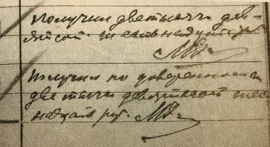 1921-ci il yanvarın birinci yarısı üçün RSFSR Xalq Komissarlığının nəşriyyat şöbəsinin əməkdaşlarının maaş cədvəlində əmək haqqının alımasına dair Məmməd Əmin Rəsulzadəyə aid qəbz və imza var, həmçinin Məmməd Əli Rəsulzadənin (razılaşmaya görə) maaşına görə də. (GARF. F. R-1318. Op. 21. D. 137. L. 7).