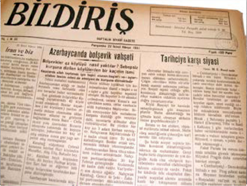 1930-cu ilin 7 avqustunda nəşrə başlayan qəzetin ilk sayının imtiyaz sahibi A.Kazımzadə, məsul müdiri Kamal olmuşdur. Lakin qəzetin 45-ci sayından məsul müdir vəzifəsini B. Süleyman, 56-cı saydan etibarən isə Ümumi Nəşriyyat və Yazı İşləri müdirliyi M.B.Məmmədzadə tərəfindən yerinə yetirilmişdir. "Orhaniyyə" mətbəəsində nəşr ediən qəzet 37-ci sayından başlayaraq "Öztürk" mətbəəsində nəşr edilmişdir. Qəzet həftədə bir dəfə cümə axşamı 4 səhifədən ibarət olaraq nəşr olunurdu. Qəzetin son sayı 1931-ci il 10 sentyabr tarixinə aiddir. Dörd səhifəlik qəzetin birinci səhifəsində “Bildiriş” imzası ilə dərc olunan başlıqla yanaşı Rusiyada baş verən digər hadisələr, o cümlədən Azərbaycanla bağlı xəbərlərin əhəmiyyətindən bəhs edilərkən, ikinci səhifədən digər ölkələrə dair xəbərlər davam edirdi. Aşağı hissədə xarici ölkələrlə bağlı hadisələrə yer verilmiş, vaxtaşırı silsilə yazılar dərc olunmuşdu. Üçüncü səhifənin bir hissəsi Türkiyəyə həsr olunduğu halda, xatirə kitabının nəşrinə də cəhd edilmişdi. Dördüncü səhifədə Türk Dünyası xəbərləri və birinci səhifənin davamı olan xəbərlər yerləşirdi. Qəzet ilk sayından etibarən verdiyi sözə və məzmununa sadiq qalmağa çalışmışdı. Birinci sayda; “Sovet Rusiyasında”, “Amerikada GPU”, “Qafqazda siyasi vəziyyət”, “Son xəbərlər”, “Yeni rus-çin qarşıdurması?”, “İki ayda 18000 vəzifə” məqalələri dərc edilmiş və bir elan verilmişdir. Elanda “Solovkidə gördüklərim... Növbəti sayımızda Solovkinin maraq dairəsində olan gənc azərbaycanlı istiqlal fəalının maraqlı xatirələrini oxuyun!” cümlələri yer alırdı.