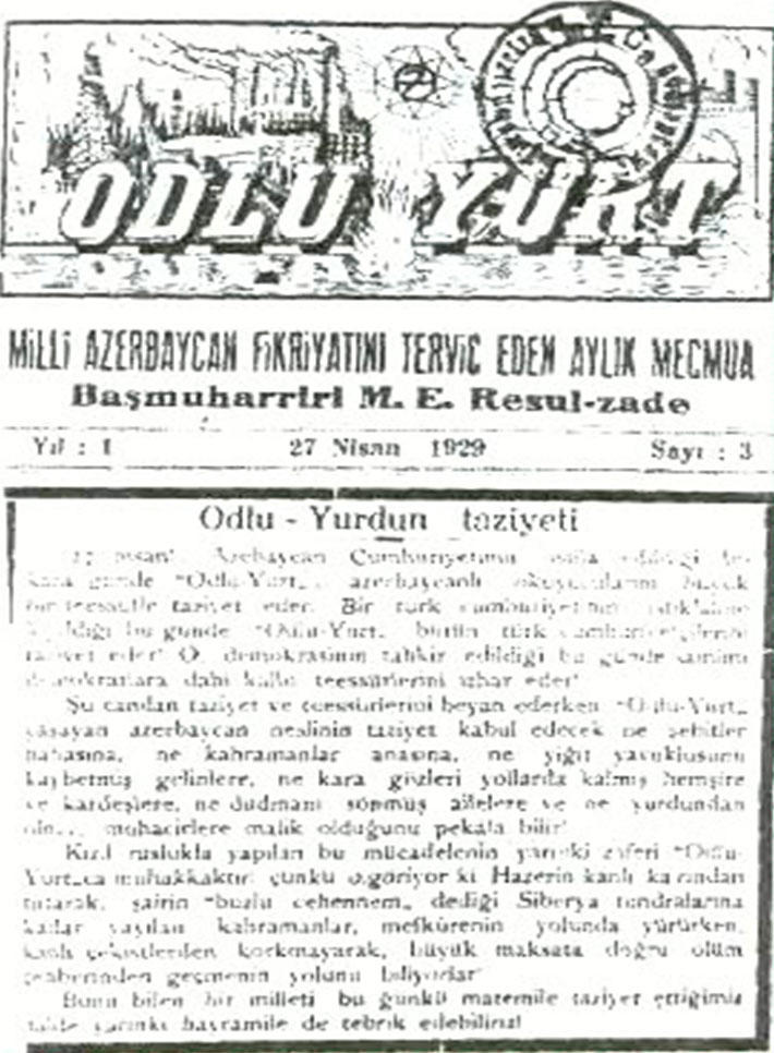 - "Odlu Yurd" müstəqil Azərbaycan Xalq Cumhuriyyətinin məfkurəsini müdafiə edir.